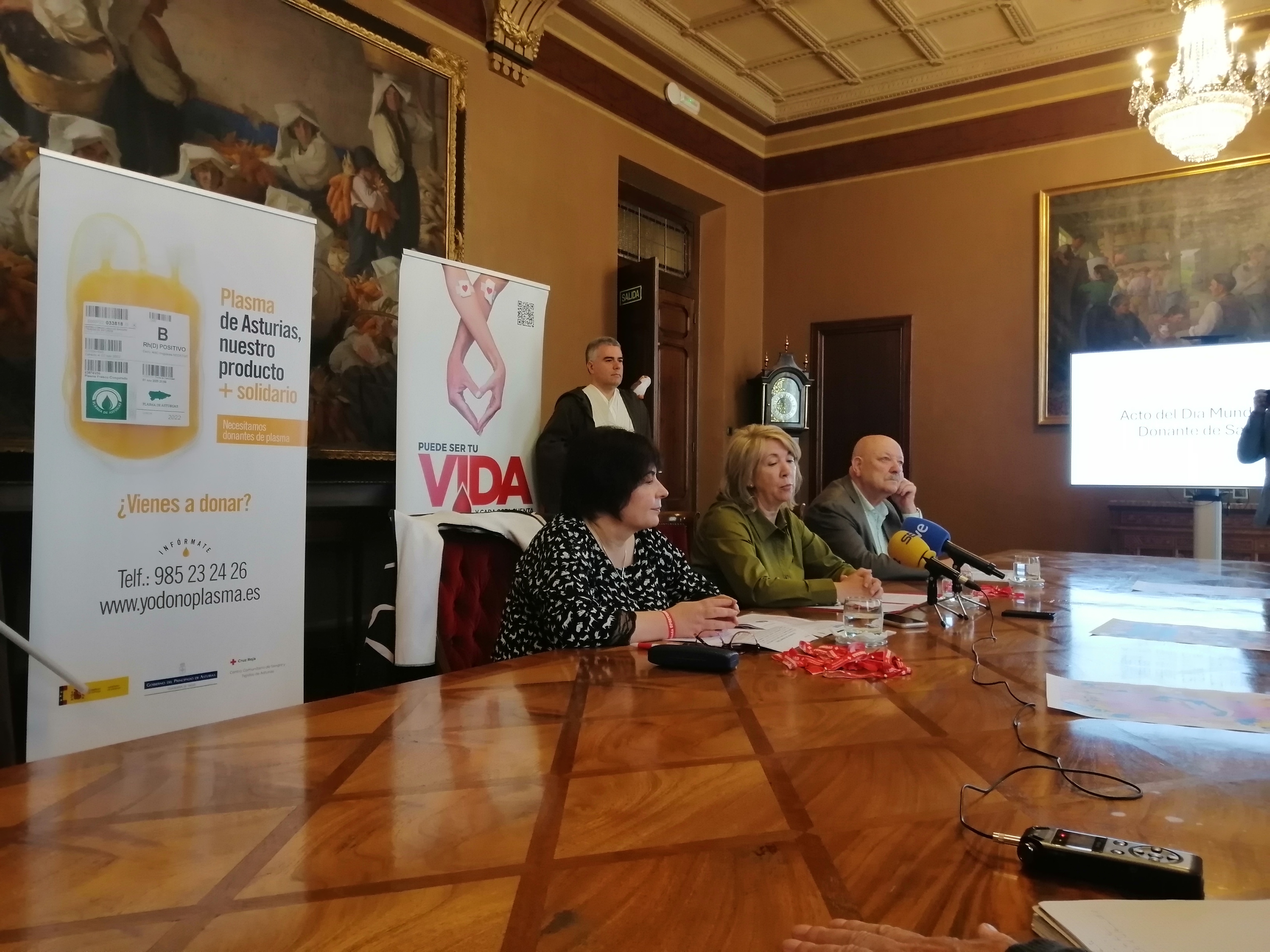 La Junta General ha acogido esta mañana el acto de celebración del Día Mundial del Donante de Sangre. La vicepresidenta primera, Celia Fernández, ha presidido el encuentro, en el que también han intervenido María Teresa Díaz, directora gerente del Centro Comunitario de Sangre y Tejidos de Asturias, y Faustino Valdés, presidente de la Federación de Donantes de Sangre de Asturias.